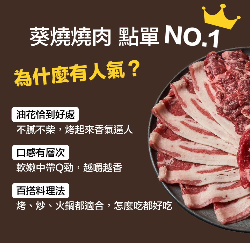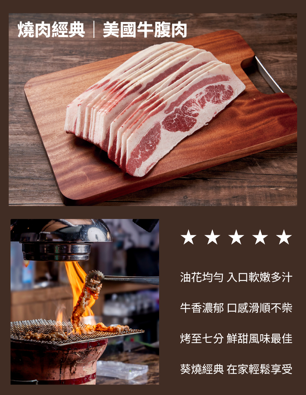來自美國穀飼牛的優質腹肉,擁有迷人的油脂香氣與Q彈口感,葵燒燒肉嚴選推薦,是熟客必點的經典之一。